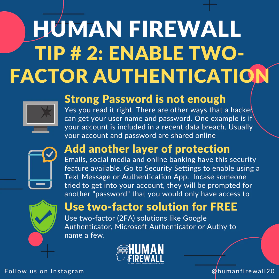 Human Firewall Tip # 2: Enable Two-factor authentication (2FA) Two-factor authentication (2FA) or can be also called as multi → March 2, 2020