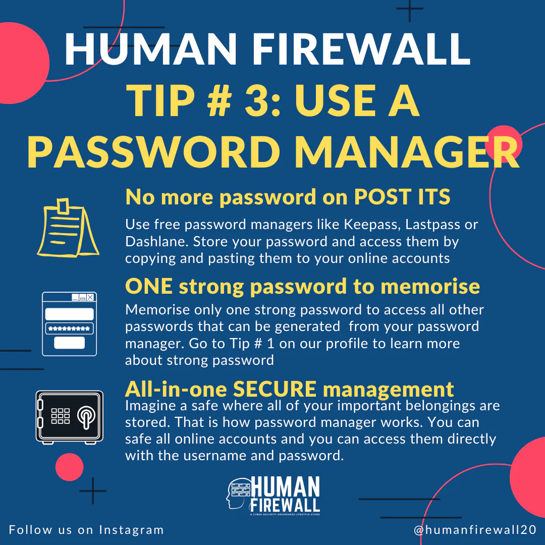 Human Firewall Tip # 3: Use a password manager Password manager is a “hack” on its own that not → March 3, 2020