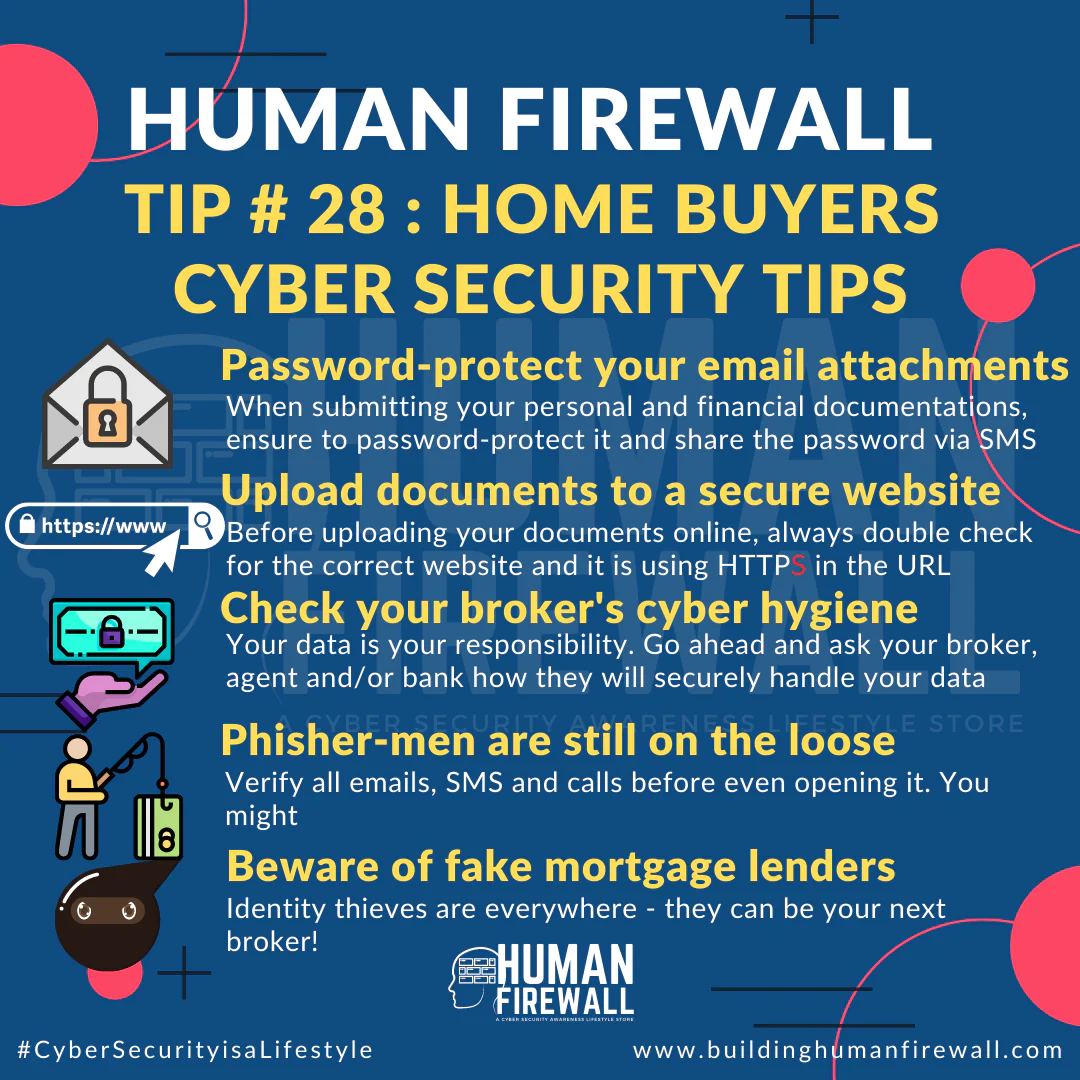 Human Firewall Tip # 28: Home buyers cyber security tips 🏡 If you are on your quest to buy your → January 19, 2021