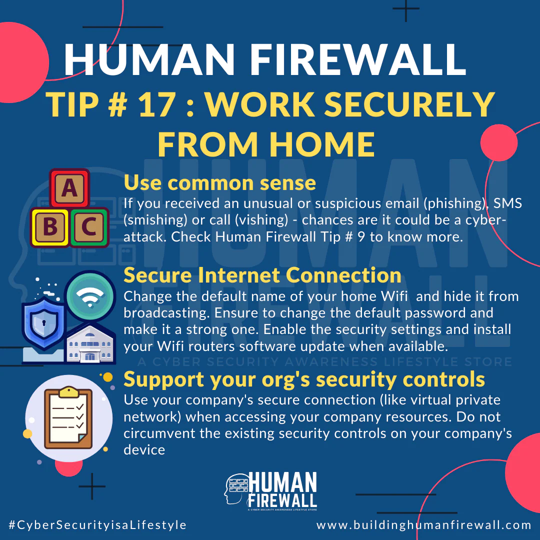 Human Firewall Tip # 17: Work “Securely” From Home The coronavirus pandemic situation has forced majority of us from → March 27, 2020