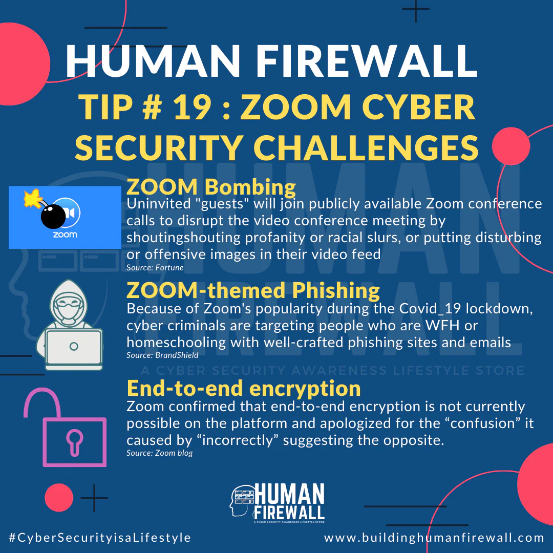 Human Firewall Tip # 19 – ZOOM Cyber Security Challenges According to Inc website, Zoom Became the most important app in the business → April 3, 2020
