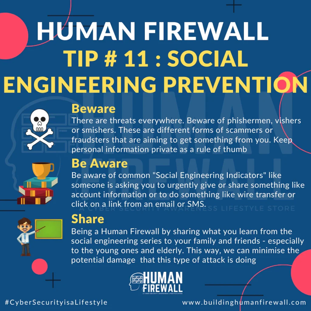 To end the Social Engineering #humanfirewalltips series, we are sharing ways on how to prevent this type of attack from being successful. In our opinion, the following tips are important in order to be ahead of this “cat-and-mouse” chase.